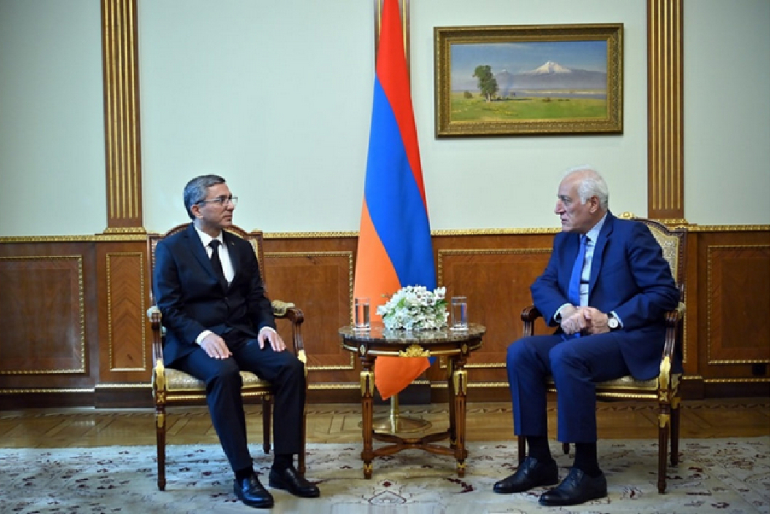 On 3 October, President of the Republic of Armenia Vahagn Khachaturyan met with Turkmenistan's Ambassador Extraordinary and Plenipotentiary to Yerevan, Muhammetgeldi Ayazov, who is completing his diplomatic mission. This was reported by the online news resource TerraNews. V. Khachaturyan conveyed congratulations to the President of Turkmenistan, Serdar Berdimuhamedov, and the National Leader of the Turkmen people, Chairman of the Halk Maslahaty of Turkmenistan, Gurbanguly Berdimuhamedov, on the 34th anniversary of Turkmenistan's independence. The President of Armenia also noted the high level of bilateral relations, as well as his positive impressions from his visits to Ashgabat and participation in the Third UN Conference on Landlocked Developing Countries, held in the ‘Avaza’ National Tourist Zone. At the meeting, the parties emphasised the importance of political, economic and humanitarian cooperation. The Ambassador conveyed greetings from the President of Turkmenistan and the National Leader of the Turkmen people. The President of Armenia thanked the diplomat for his contribution to the development of bilateral relations and wished him success.