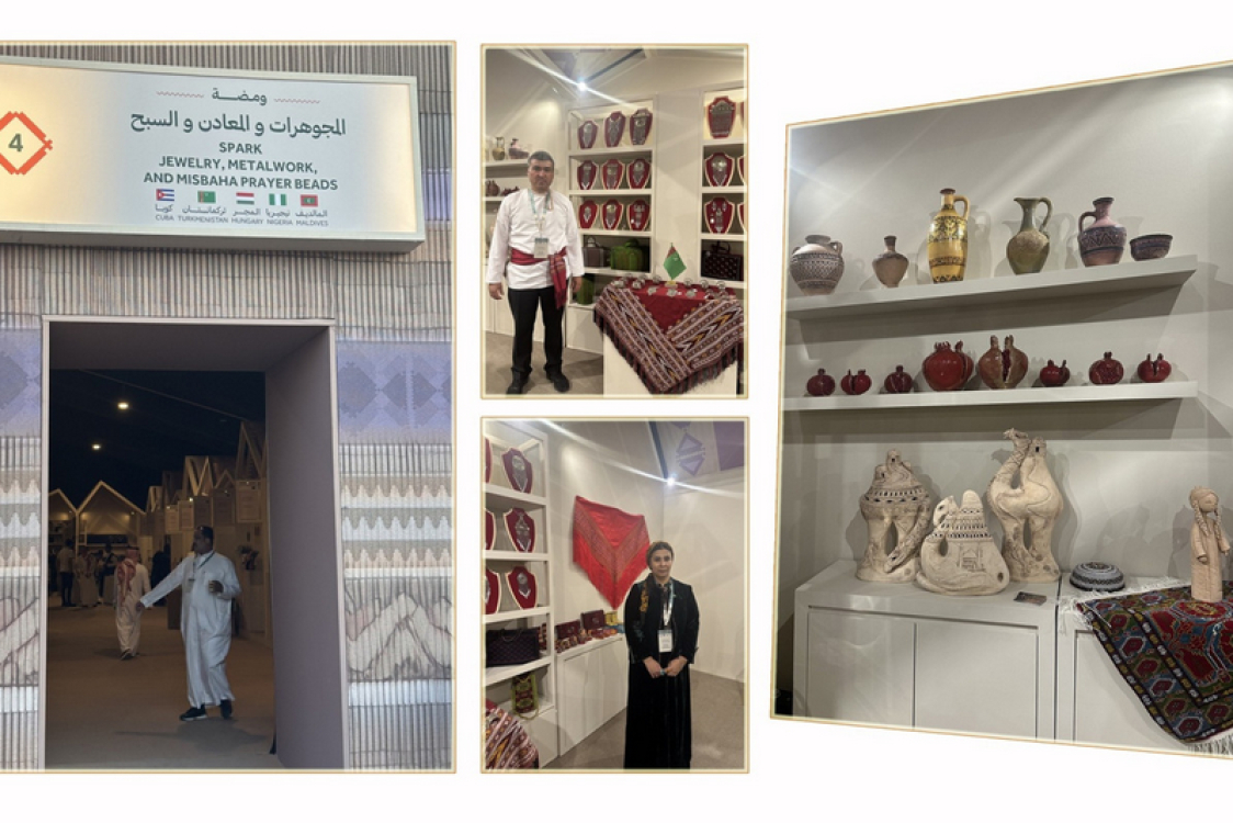Третья Саудовская международная неделя ремесел проходит в Эр-Рияде с 13 по 26 ноября 2025 года под патронажем министра культуры принца Бадера бин Абдуллы бин Фархана. В числе участников нынешнего года — делегация из Туркменистана. Государственная академия художеств страны представила ковровые изделия ручной работы, традиционные серебряные украшения и керамику, сообщает пресс-служба МИД Туркменистана. В форуме участвуют представители более чем 40 государств и свыше 400 саудовских ремесленников. Проект реализуется в рамках Года ремесел 2025 и ориентирован на усиление делового потенциала мастеров, предоставляя им дополнительные рыночные возможности и платформу для продвижения своих изделий. Преподаватель Академии Огулдженнет Моллаева отметила, что инициатива правительства Саудовской Аравии создает значимые возможности для продвижения национального культурного наследия и популяризации туркменского ковроделия, включенного в Репрезентативный список нематериального культурного наследия ЮНЕСКО. Её коллега Шазада Оразбердивев представил гостям экспозицию национальных украшений — «гульяка», «тумар», «билезик» — рассказывая об их традициях, символике и месте в туркменской культуре. Преподаватель Академии Хезретгулы Аннагельдыев демонстрирует авторские керамические работы: вазы, кувшины, статуэтки и другие изделия. По его словам, каждая работа посвящена Международному году мира и доверия и отражает стремление мастеров привнести в ремесленную традицию современное художественное звучание.