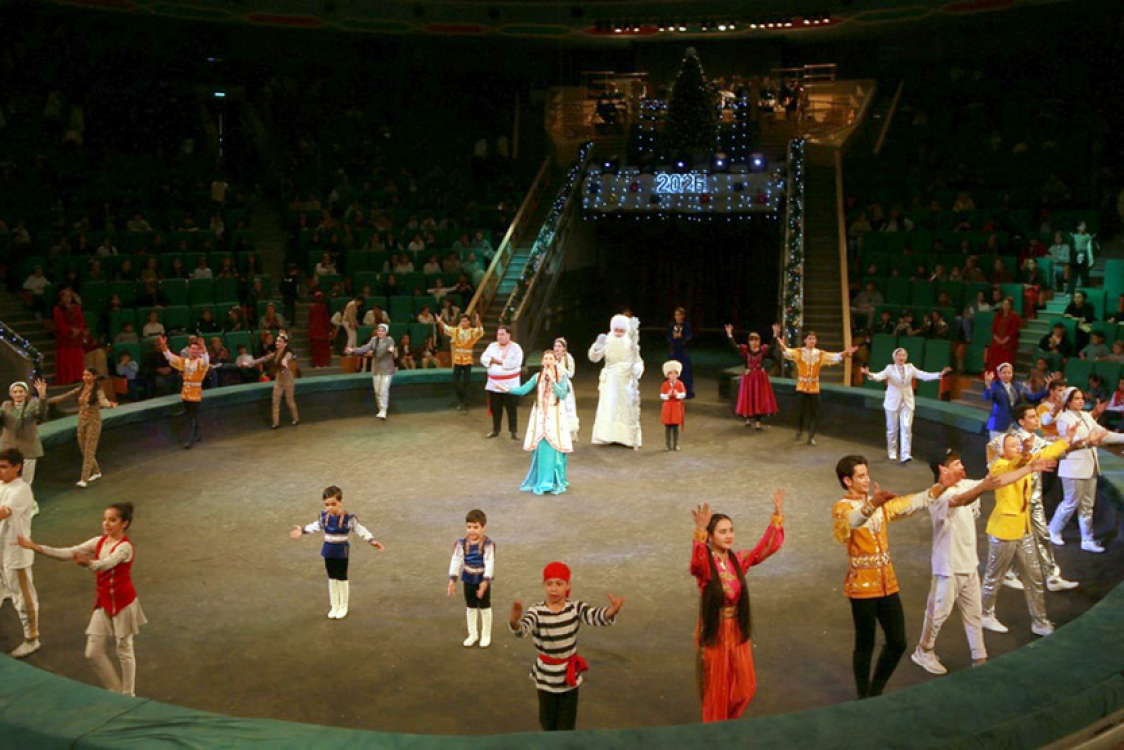 Посещение цирковых представлений в дни новогодних праздников давно стало доброй традицией для ашхабадской детворы и гостей столицы. В этом году творческий коллектив Туркменского государственного цирка порадовал зрителей новой праздничной программой, сообщает AsmanNews. Открыли шоу главные персонажи новогодних торжеств — Аязбаба и Гарпамык. Они поздравили детей и их родителей с наступлением 2026 года. По классике циркового жанра первыми на манеж вышли воздушные гимнасты. Номер «Ярганат» на кольце под аккомпанемент оркестра исполнила юная артистка Айлар Бибилова, выступившая в образе летучей мыши. Особое впечатление произвёл номер «Каучук», в котором три гимнастки продемонстрировали исключительную гибкость. В образной форме они представили сцену появления на свет маленьких змей, наполнив выступление художественной выразительностью. Второе отделение программы под названием «Крылатые скакуны» было посвящено национальному конному искусству. На манеж вышли джигиты группы национальных конных игр «Galkynyş» — шестикратные лауреаты престижных международных фестивалей и гордость Туркменистана. Артисты продемонстрировали виртуозную джигитовку: свечи, пирамиды, вертушки, элементы жонглирования и сложные трюки на полном ходу. Особое внимание зрителей привлёк конь Даламат под управлением заслуженного коневода Туркменистана Сердара Пыгыева, исполнивший необычные элементы, включая прыжки через скакалку. В составе коллектива выступили и юные наездники, среди которых Рамазан Акмурадов и Батырхан Пыгыев — внук народного коневода Туркменистана Пыгы Байрамдурдыева. Финалом представления стал торжественный парад-алле. На манеж вышли все участники программы, а Аязбаба и Гарпамык появились верхом на конях, символично подчеркнув девиз года и основную идею праздничного шоу.