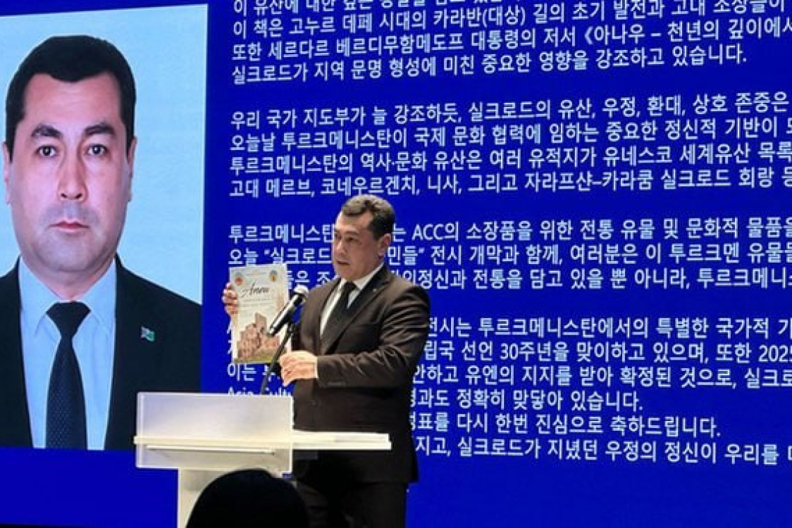 25 ноября Чрезвычайный и Полномочный Посол Туркменистана в Республике Корея Бегенч Дурдыев принял участие в открытии выставки «Кочевые народы вдоль Шелкового пути» в городе Кванджу, сообщает новостной интернет-ресурс TerraNews.
